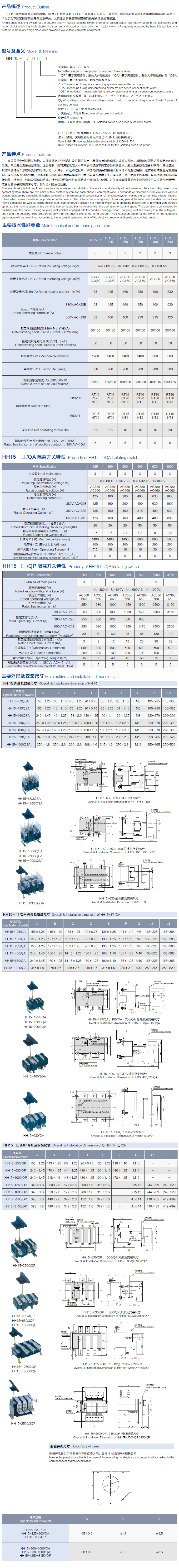 HH15-S系列雙投隔離開關